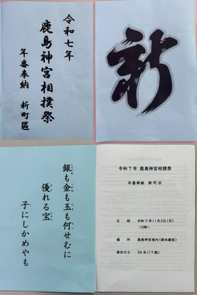 令和7年11月3日(月)「令和7年 鹿島神宮相撲祭」が鹿島神宮境内(御本殿前)にて行われ、当社 会長、社長、従業員子弟が参加しました。この相撲祭は、五穀豊穣・子どもの健やかな成長などを祈念して、古くから続く行事です。