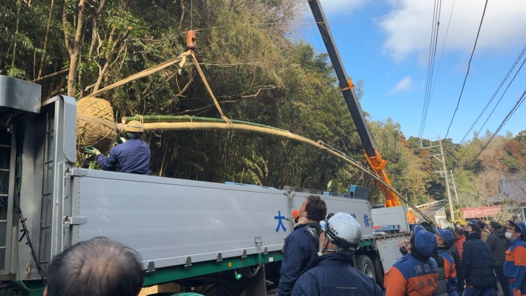 令和8年2月18日 鹿島神宮の祭頭祭で使われる大豊竹を当社のトレーラーが運びました。