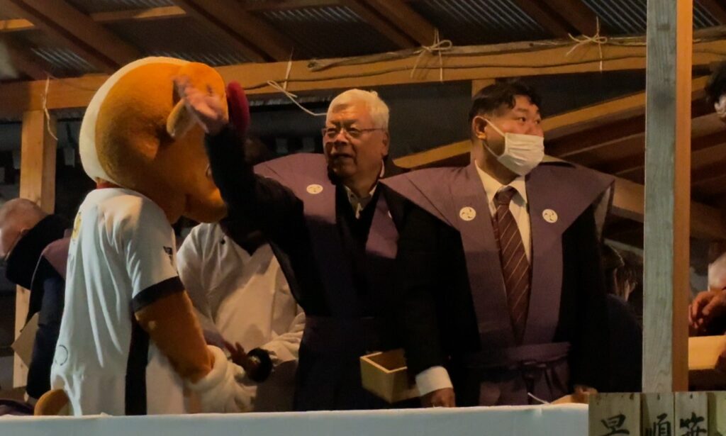 令和8年2月3日(火)鹿島神宮の節分祭に当社社長と役員が参加し交通安全を祈願し豆まき行事に参加しました。